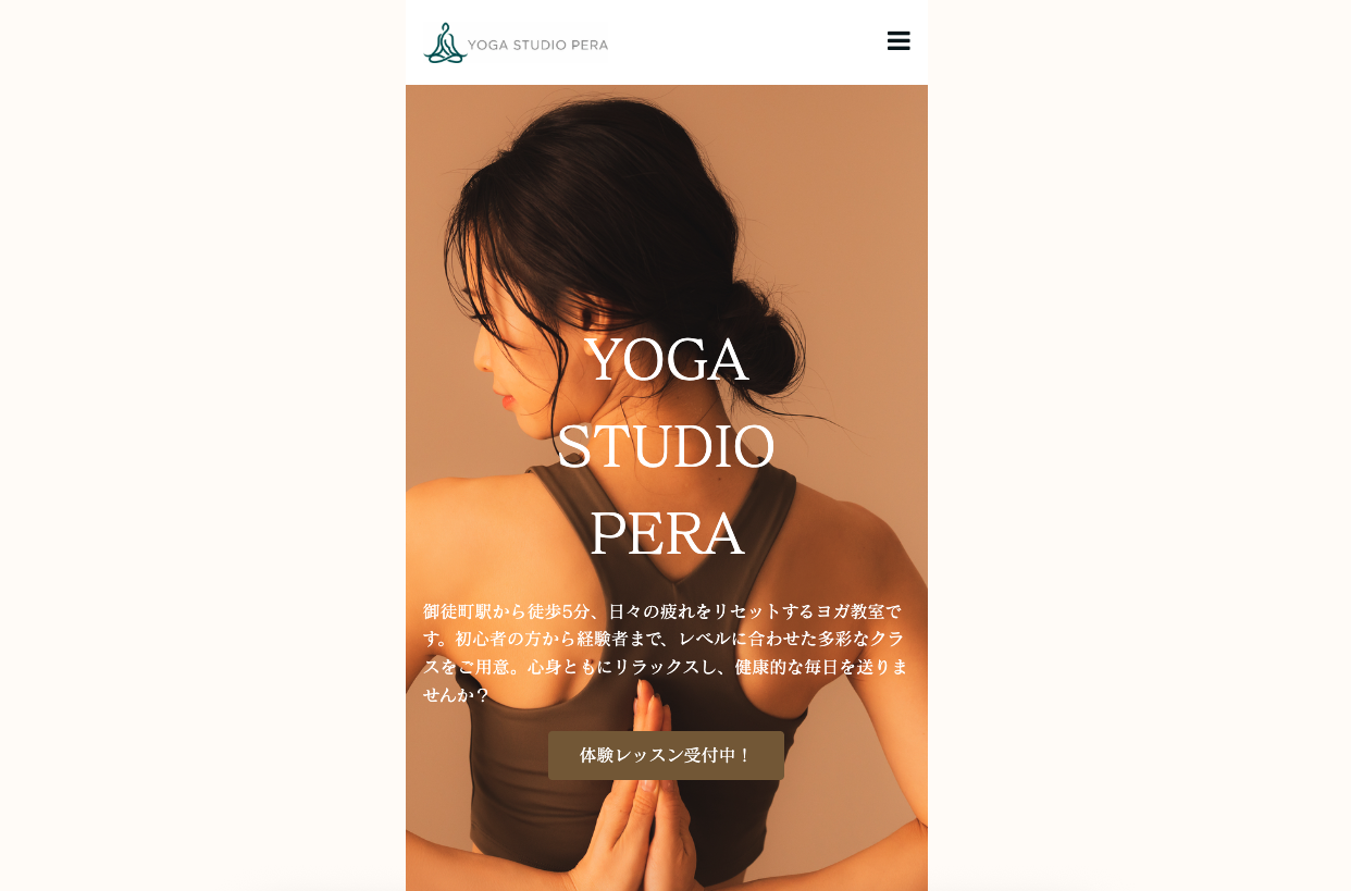 オンラインを中心とした個人経営のヨガスタジオを想定したサンプルページです。