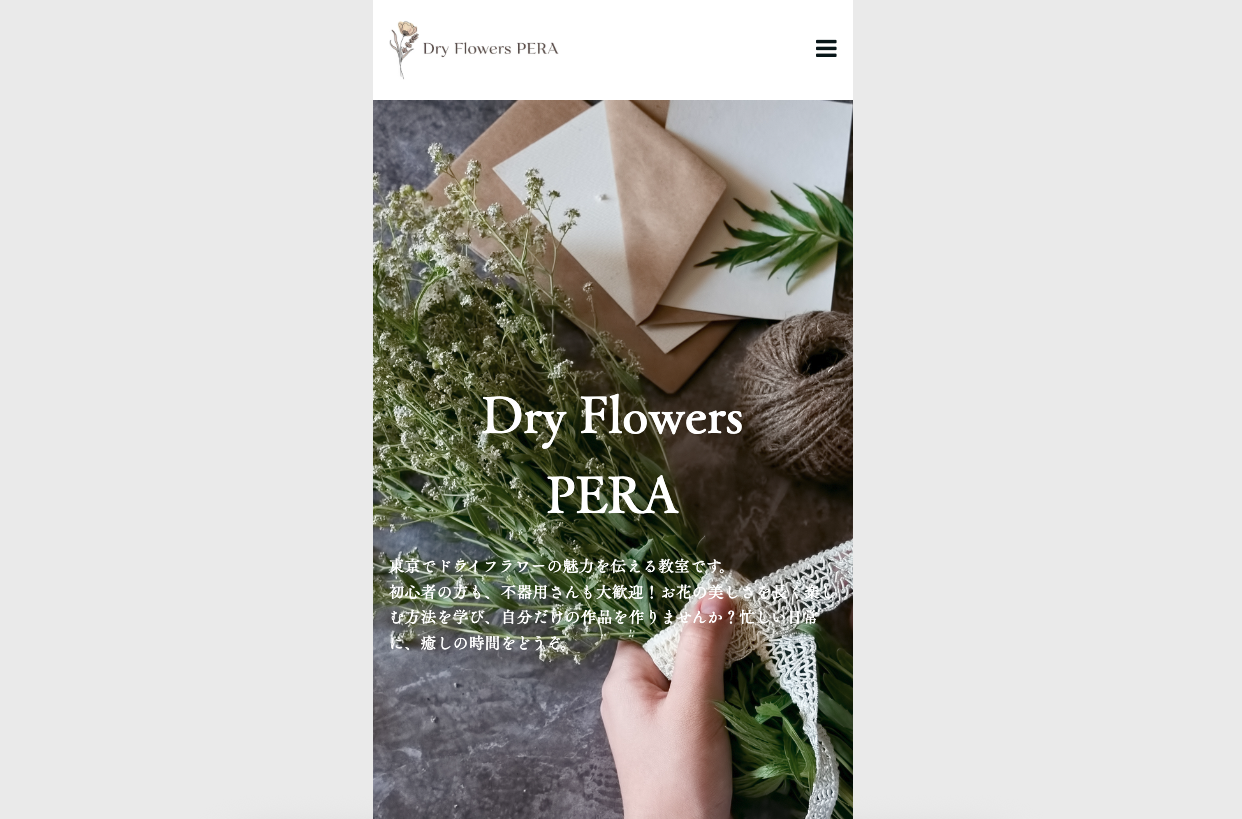 ドライフラワー教室と、作成したドライフラワーを販売するオンラインショップを想定したサンプルページです。